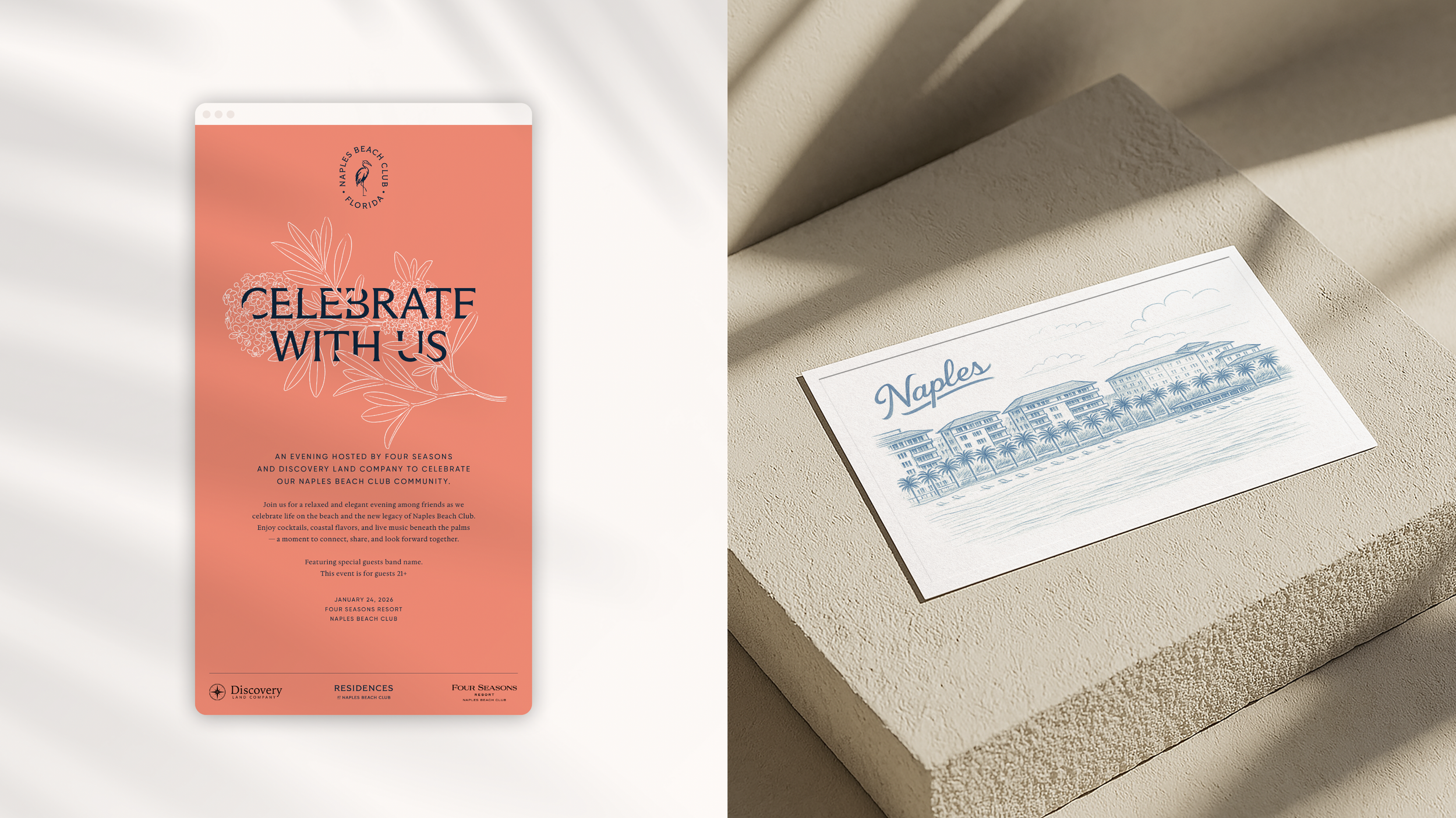 Naples Beach Club is a limited collection of 58 beachside residences and 95 golfside residences, set on a 125-acre property, complete with golf course, racquet club, spa, dining outlets, and beyond. A rare gem on Florida’s Gulf Coast, Naples Beach Club is a true sanctuary in the heart of Old Naples. With world-class amenities including a Tom Fazio-designed golf course, a luxurious spa and well-being center, and a charming Market Square Town Center, life at Naples Beach Club offers an idyllic beachside retreat where unforgettable memories are made.
